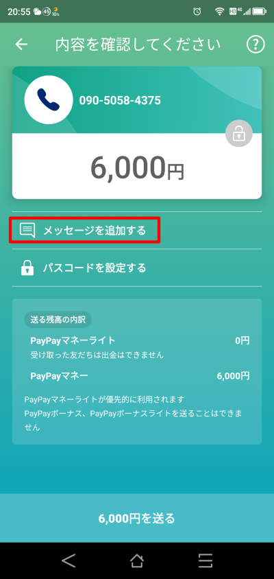 PayPayでの送金